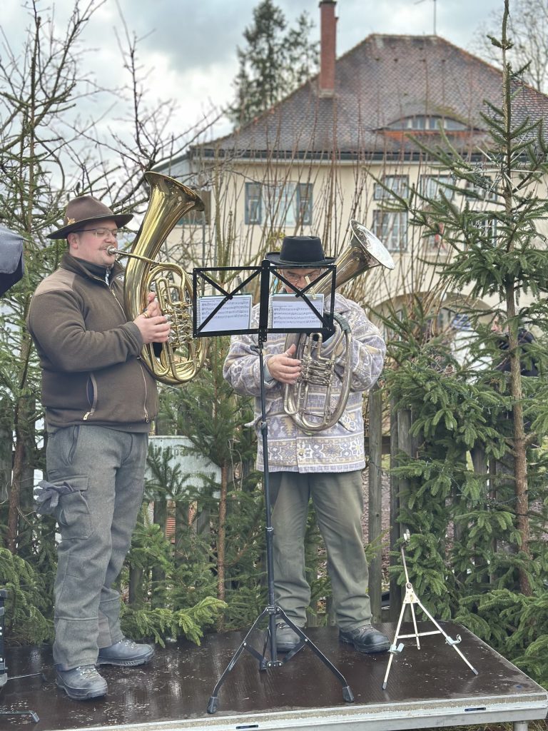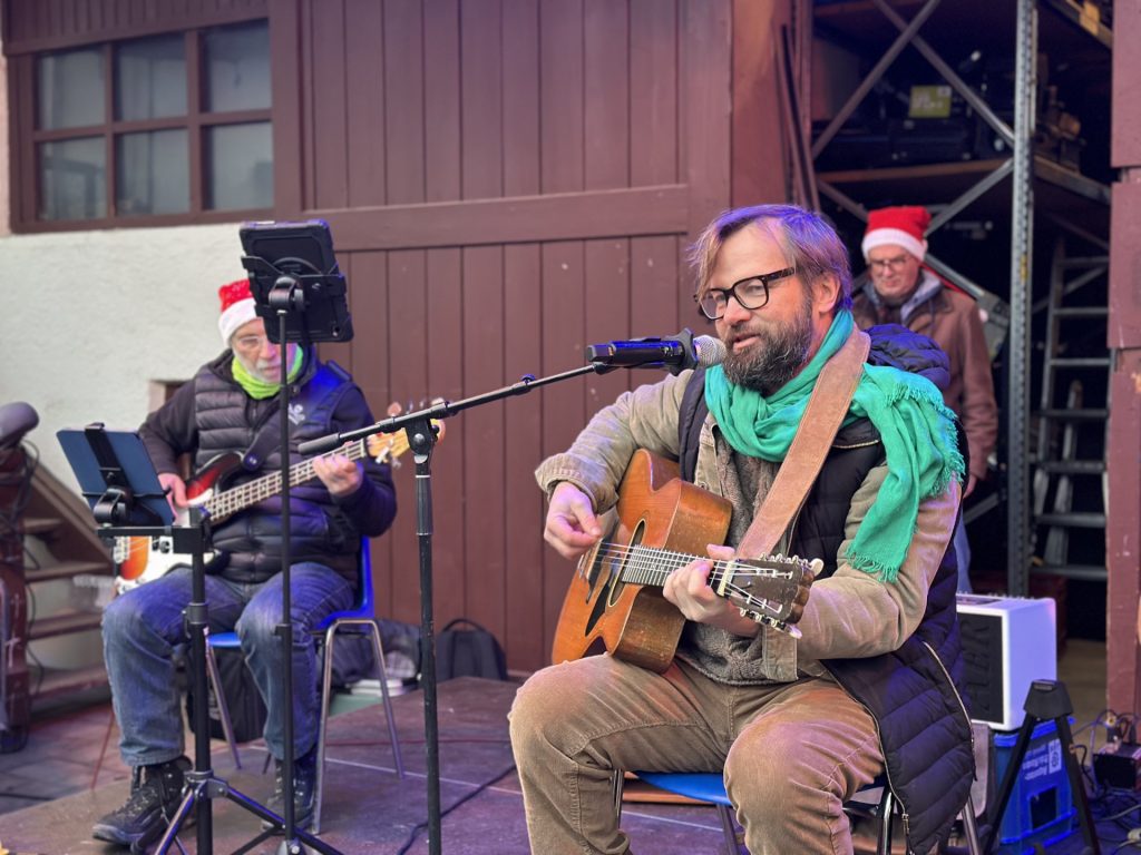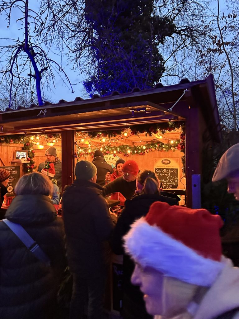 Die Musik kam weitgehend aus Unterbrunn: Der Stefan Berchtold, unser Kulturreferent, spielte mit Begleitung Weihnachtslieder und bekannte Songs, die Off-Bläser sorgen vor dem Pfarrhof für weihnachtliche Stimmung, und der gemischte Chor hatte natürlich auch seinen Auftritt. Von Mandis Kasperltheater können wir nicht viel berichten – als Erwachsener findet man ja nur schwer einen Platz. Doch es wird gut gewesen sein!