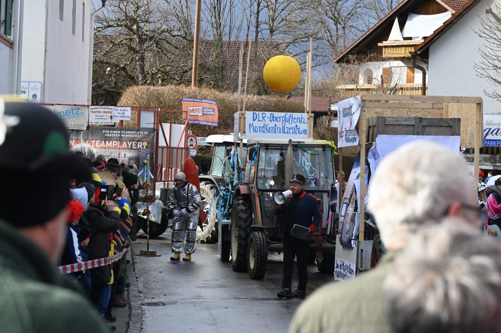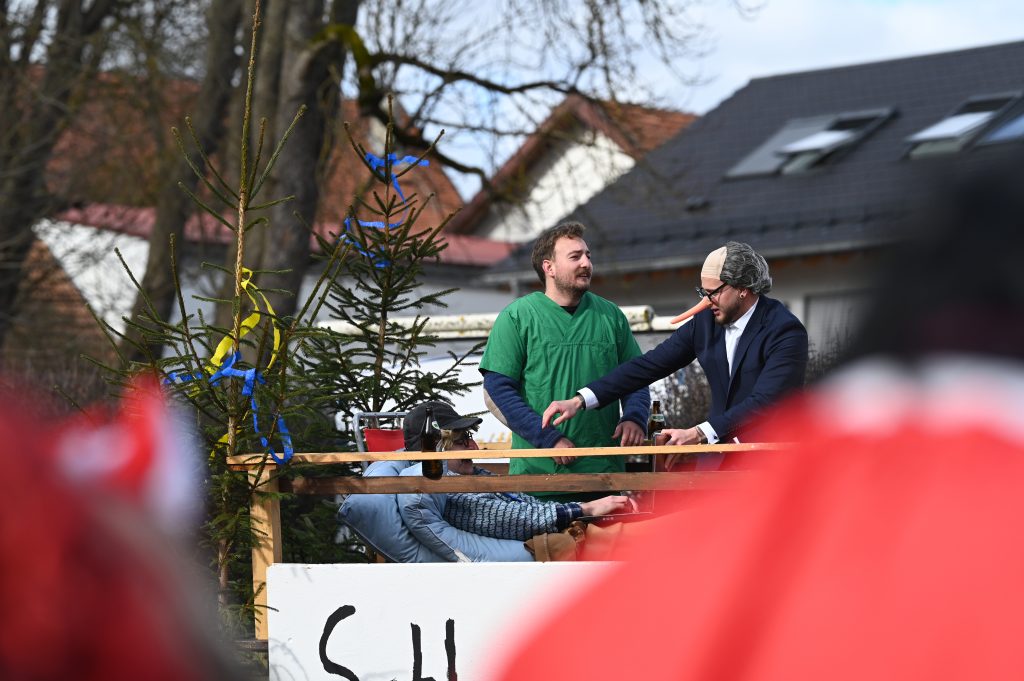 Die Themenpalette der Wagen reichte wieder vom Ort über den Freistaat bis in die große Politik. Mit der Kommunalwahl beschäftigte sich nur ein Wagen (soweit wir das im Blick hatten, wir waren ja selbst darauf), vielleicht ist das so kurz vor der Abstimmung auch ein bissl heikel. “Willkommen im Unterbrunner Wahlplakatewald” war das Motto. Sogar der Maibaum wurde zuplakatiert, so eifrig sind die Plakatierer derzeit unterwegs.